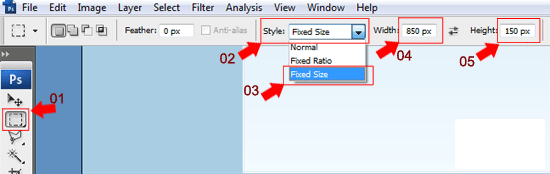 12 创建新图层(Ctrl+Shift+N) 命名为 “navigation“.使用矩形选区工具(M),设置固定大小: 850px 宽 和 50px 高.