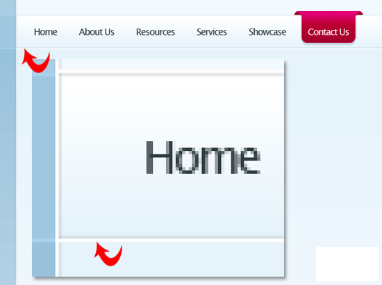 41 使用和导航经过按钮类似的方法创建左边部分, 区别在于这次重叠区域更加长,并且是水平调整(如果需要请重新跳回阅读).
