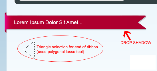 42 在绸带的结尾部分(右手边),使自定义形状工作(L)创建三角形 然后按下del键删除不需要部分. 最后, 增添图层样式和虚拟文字.