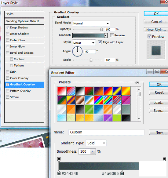 33 填充任意颜色并且为图层加入渐变叠加和描边两种图层样式; 根据下面图片设置.