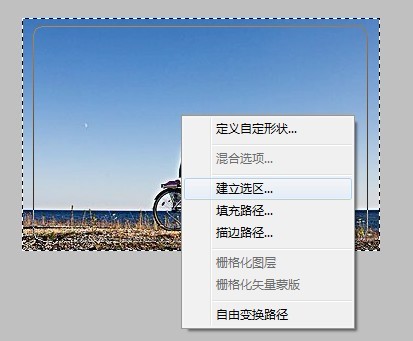 原图 1:用PS打开我们要做圆角矩形的图片,然后选择矩形工具(M),选出要做的区域。如下所示: 2:在“图像”菜单里选择“裁剪”,将框选区域外的图像去掉,得到如下图像: 4:选择圆角矩形工具,此时圆角矩形工具面板上出于“路径”状态,如下图: 选好后鼠标放在图片上点右键,选择“建立选区”,“羽化半径”选择0,然后用键盘上的“Delete”键清除。 下面是清除选区后的图片: 完毕,是不是觉得很简单,赶紧试试吧。