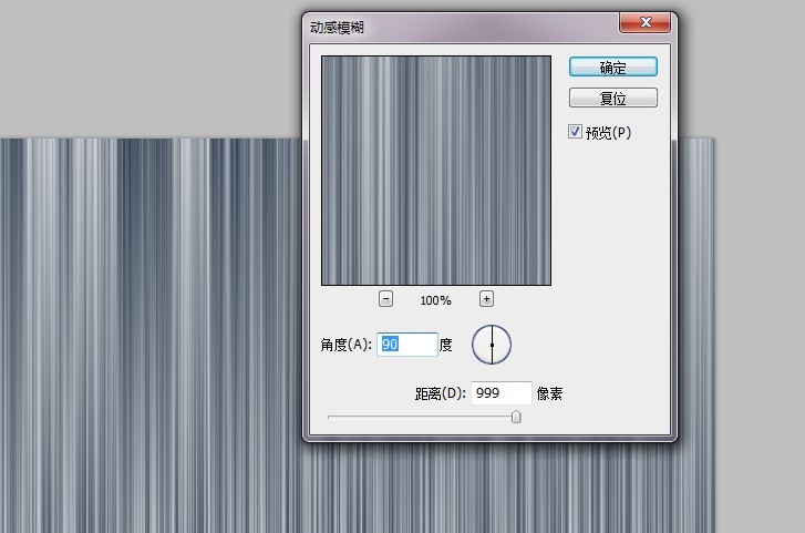 3.执行滤镜>>模糊>>动感模糊,角度随意,距离是999。