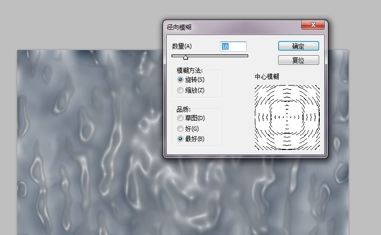 4.执行滤镜>>模糊>>径向模糊,数量自定,模糊方法是旋转。调到到合适的角度即可。