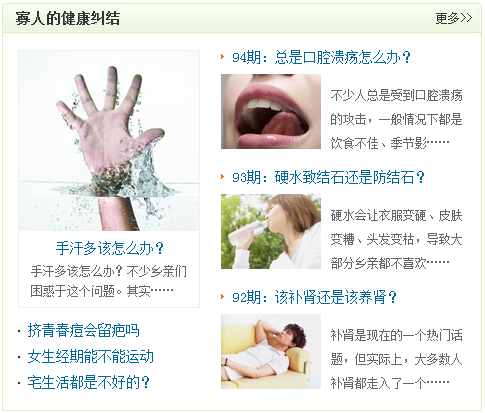 一:39健康网,比较常去的一个网站,里面的内容排版,每个频道的设计都非常的精彩 ,