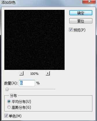 1.新建600*400大小文档,填充黑色,然后滤镜-->添加杂色,得到效果如下: