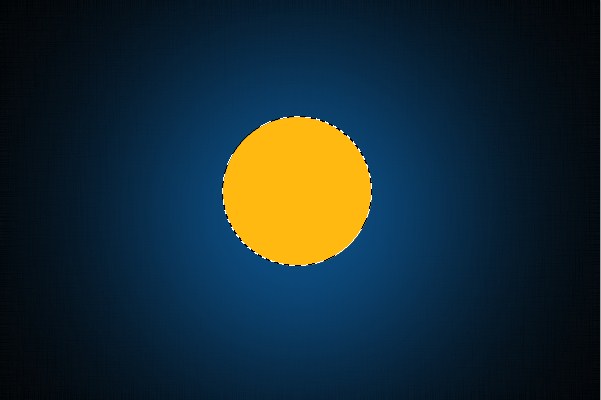 3.新建图层,用椭圆选框工具按住shift键不放,画出正圆,填充颜色#ffb910,选区不要取消。得到效果如下: