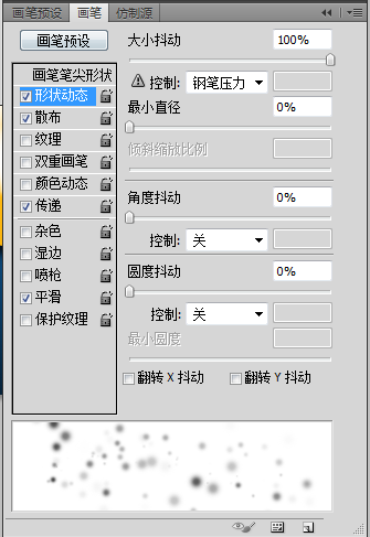 10.选择画笔工具,窗口--画笔,进行以下设置;
