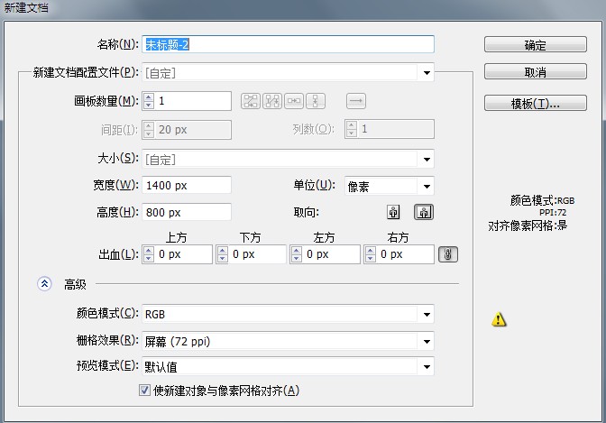一、首先打开AI新建1400x800px的画布(可自定义):
