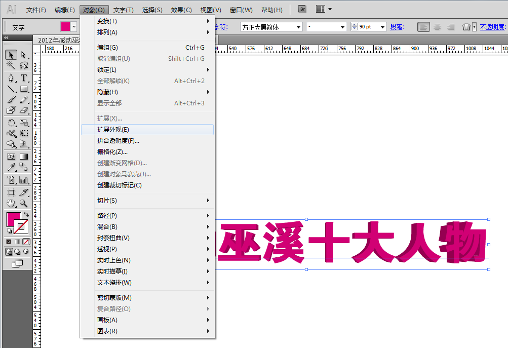 四、 把3D文字效果做好后,点击对象菜单-扩展外观,把文字打散。