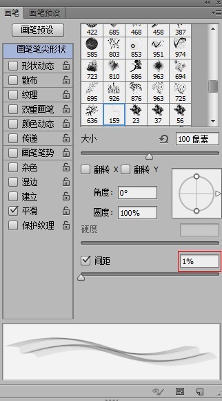 1.新建空白文件,颜色大小自定 2.新建一层,用钢笔工具在新建层上画一曲线 3.进行画笔预设,参数如下。 4.画笔预设好后,进行描边路径,描边后删除工作路径。 5.隐藏背景层,把刚才的描边路径定义成画笔(编辑-定义画笔预设) 5.删除路径层1,打开背景层眼睛,再新建图层,选定刚才定义的画笔, 6.设置画笔笔尖形状,大小根据自己需要自定,间距1%。 7.随意涂画,就可以得到透明绸带效果。