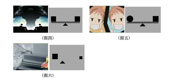 A、重心位于两个事物中间位置,形成了绝对的平衡关系。我们也称这种绝对的平衡关系为对称。如下图广告作品中,采用了对称的形式,使画面达到了绝对的平衡关系,给人一种安定平和的形式美感。(图四)