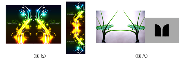 反射这一基本形式在广告中的应用是十分广泛的。例如下面的插画设计中,运用了左右位置的对应排列,给人强烈的形式美感(图八)
