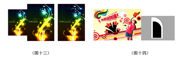 在下面设计中,灵活的运用了扩大的基本形式,形成了大小的对比变化,增加了画面的延伸感。图十四)