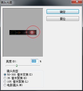 一、新建一个比Banner大的图层,填充纯黑色,然后选择“滤镜-渲染-镜头光晕”: