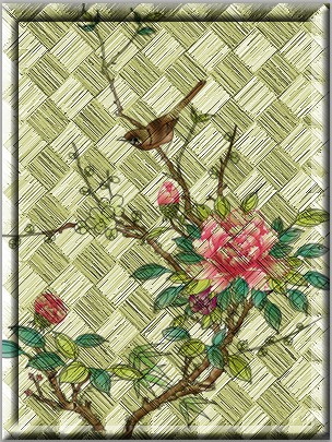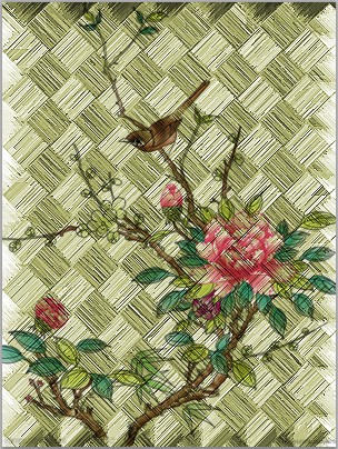 8、”Ctrl+O“打开一幅图片,将图片移到”竹编艺术“文件中,并按”Ctrl+T“调整图片到合适大小,设置图层混合模式为”正片叠底“,效果图如下所示: