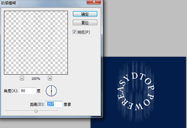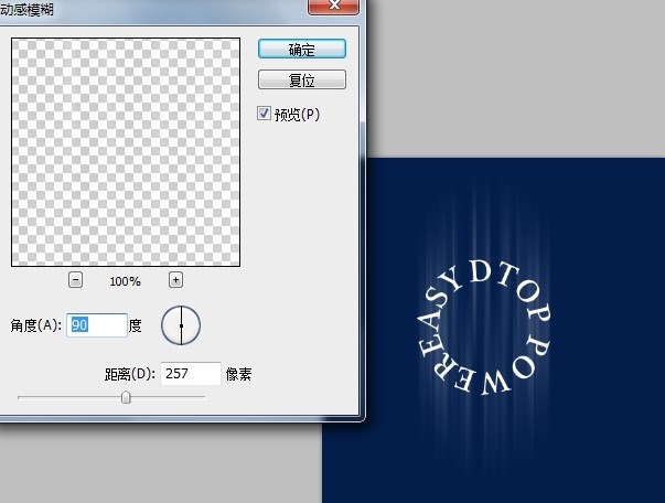 4、对栅格化的文字进行动感模糊,模糊的程度按自己的设计调配。