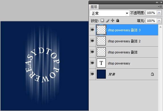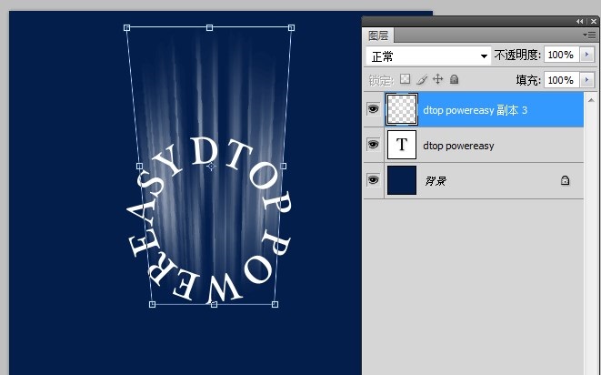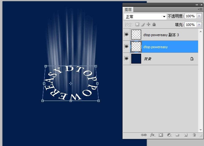 7、然后再选择光线图层与文字图层,一起变形如图: