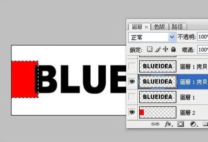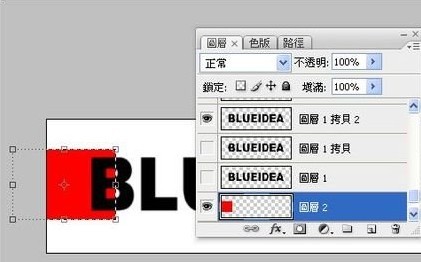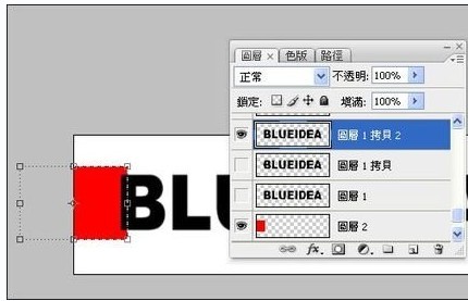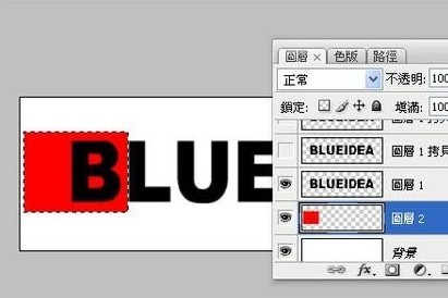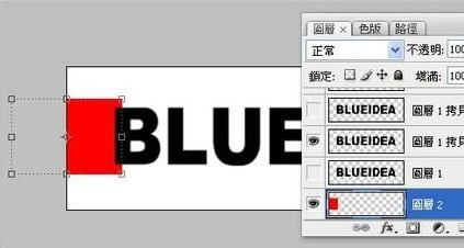 3. 最下面新增一个图层 画方块填充红色方块宽度约为空白宽度两倍