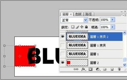 9. 选择红色方块图层 按V (移动工具)注意: 选区不要取消 !!!
