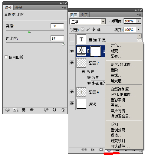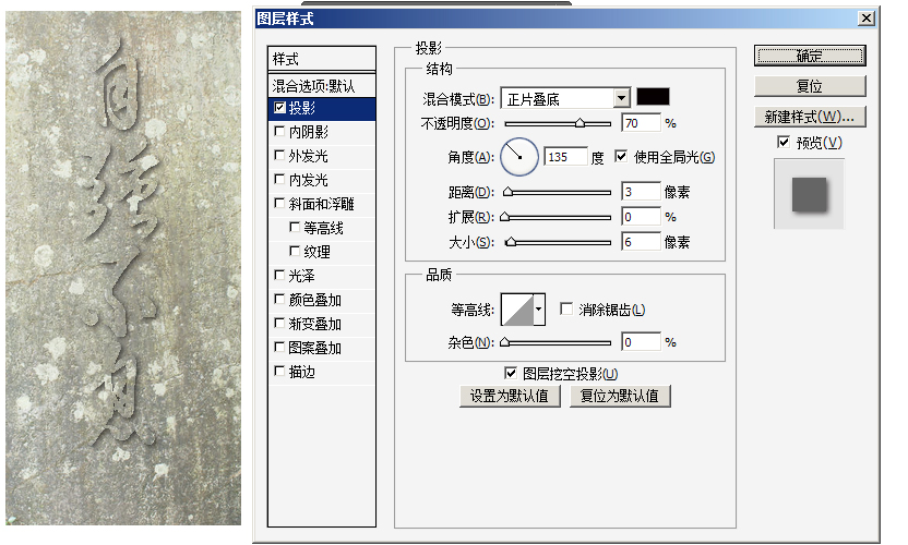 文字的浮雕效果在设计中是很常见的效果,下面简单的介绍下 原图如下: 步骤如下: 一、找一张石碑的图片截取下如上图所示 二、新建层并写上“自强不息”几个字 三、CTRY+点击字体 再点击图片图层CTRL+J复制 四、添加阴影如下图 五、添加斜面和浮雕如下图 六、创建新的填充或调整图层 七、调整亮度对比度