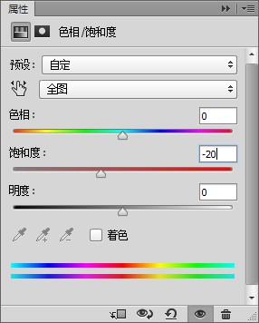 8、单击图层面板下方的“创建新的填充或调整图层”按钮,在弹出的快捷菜单中选“色相/饱和度”命令,在弹出的饱和度对话框中设置饱和度为-20。