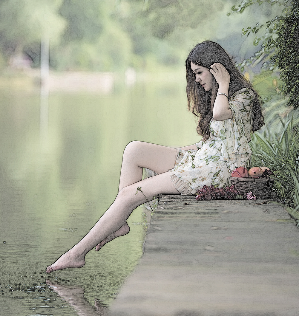 水彩素描制作方法跟素描过程基本类似。都是用滤镜及图层叠加等做出类似素描效果,只是水粉素描后期处理稍微复杂一点,需要还原一些原来图像的细节和颜色。
