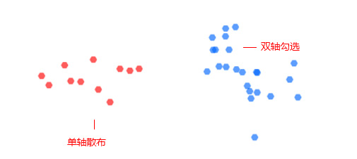 散布:散布此参数控制画笔的偏离程度,百分数越大,偏离的程度越大。两轴勾选,是指散布随X,Y轴同时扩散。不勾选即单轴扩散。