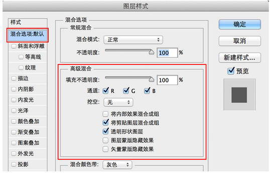 讲述不为人知的高级混合功能---图层样式之混合选项