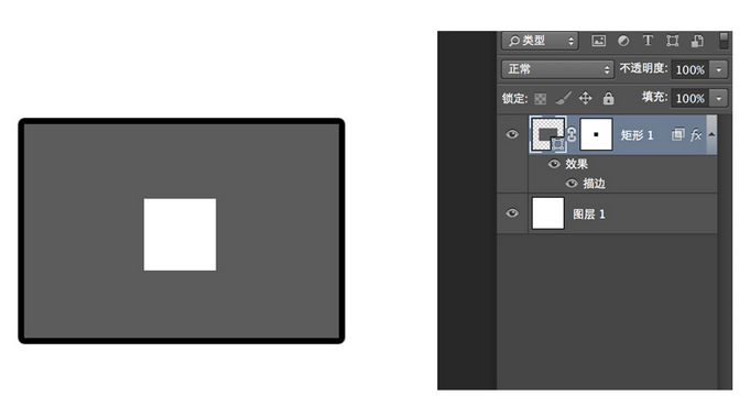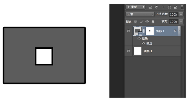 移描边为例,没有勾选的效果如上图--作用顺序是:先执行蒙板(图形被分割),然后再执行图层样式描边(所以被蒙板分割的形状也有描边的效果--)