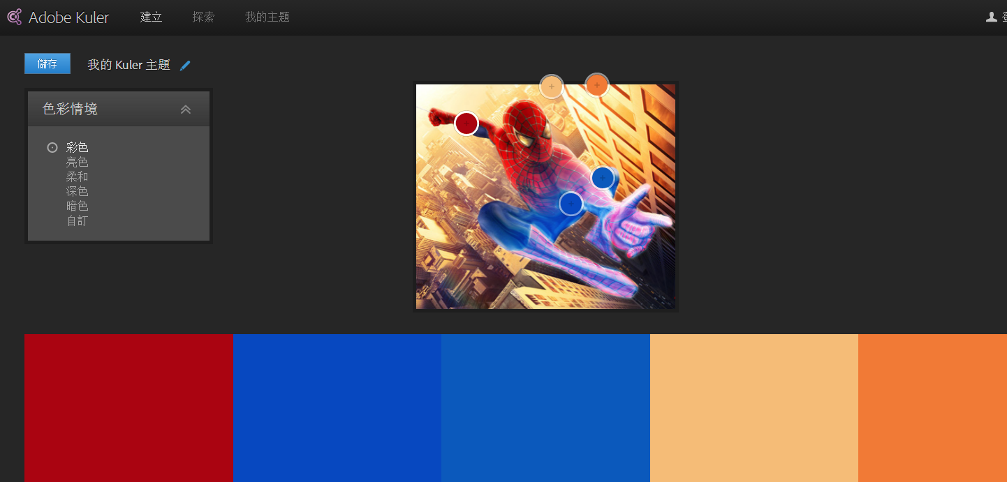 在左边的色彩情境中们可以自行选择,而图中的圆点也会随着我们的选择而变化,以下图片为选择不同情境下所显示的色彩
