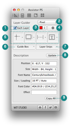 与其他切图标记软件不同的是,Assistor PS 是完全独立于 PS 本身的,说是一个外挂更加合适,旨在提高切图标记的效率及速度。虽然不是一个插件,但是它与 PS 是连通的,当你在 PS 选择一个图层在后,即可使用它的功能。如果你肯花点时间下载是试用,相信不会让你失望,甚至能可能让你觉得相见恨晚。