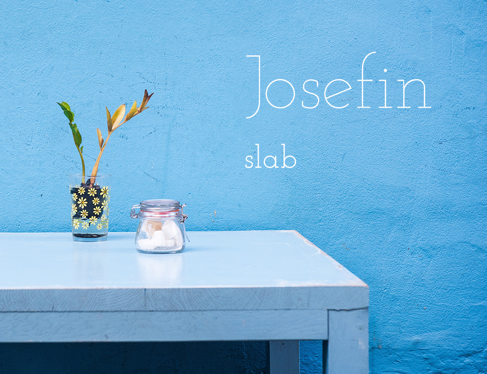 这款字体也是比较细的线体设计,它是属于衬线体的范围,josefin还有一款非衬线体,字体名称就叫jossefin,它的设计特点是字母当中,例如“e”的横线就采用了倾斜的角度,增加了字体本身由于粗细均匀带来的静止呆板的感觉,而增加了一种动态感。