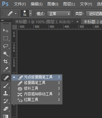 第一种:使用污点修复画笔工具,将有水印的地方圈出来,可以直接将水印去掉