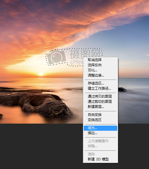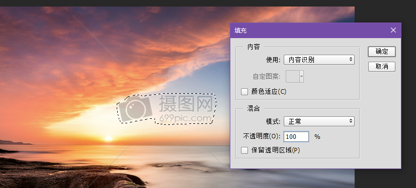 第三种:用套索工具将水印选中,右击选择填充,点击确定后可将水印立即去掉