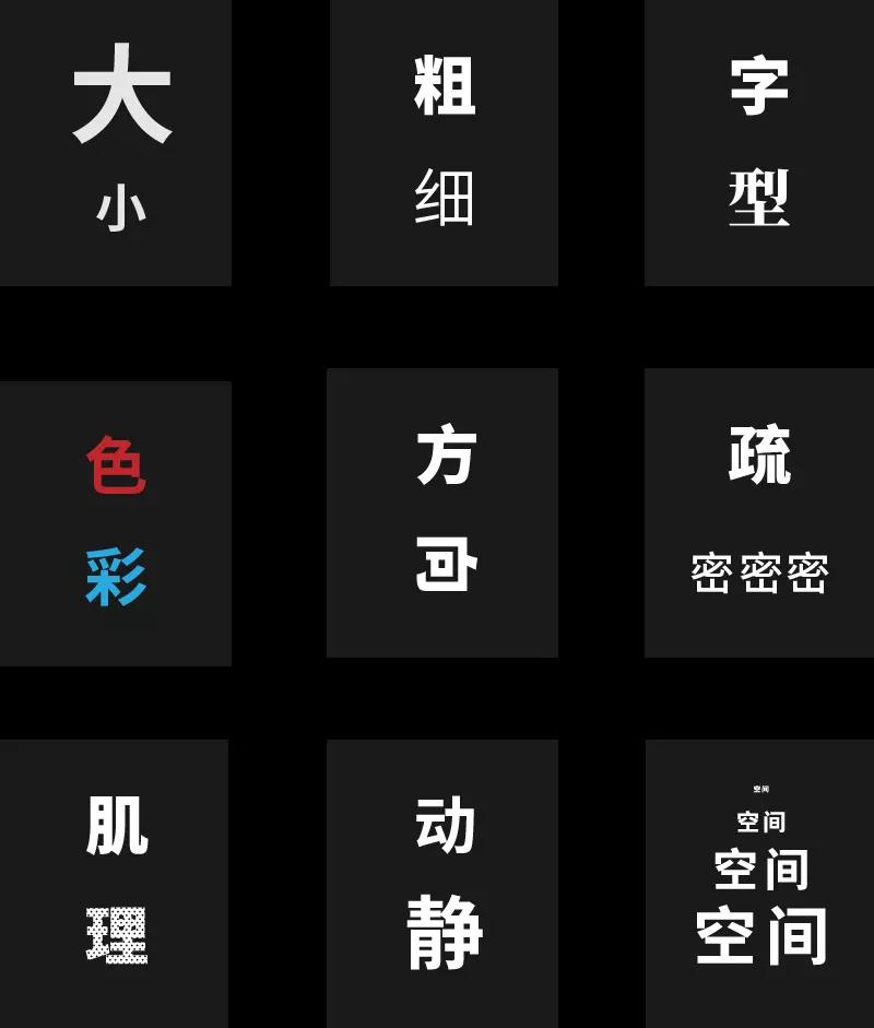 理论上元素的一切可改变特征都是可以形成对比,本期只举例了部分常用的文字编排对比形式。