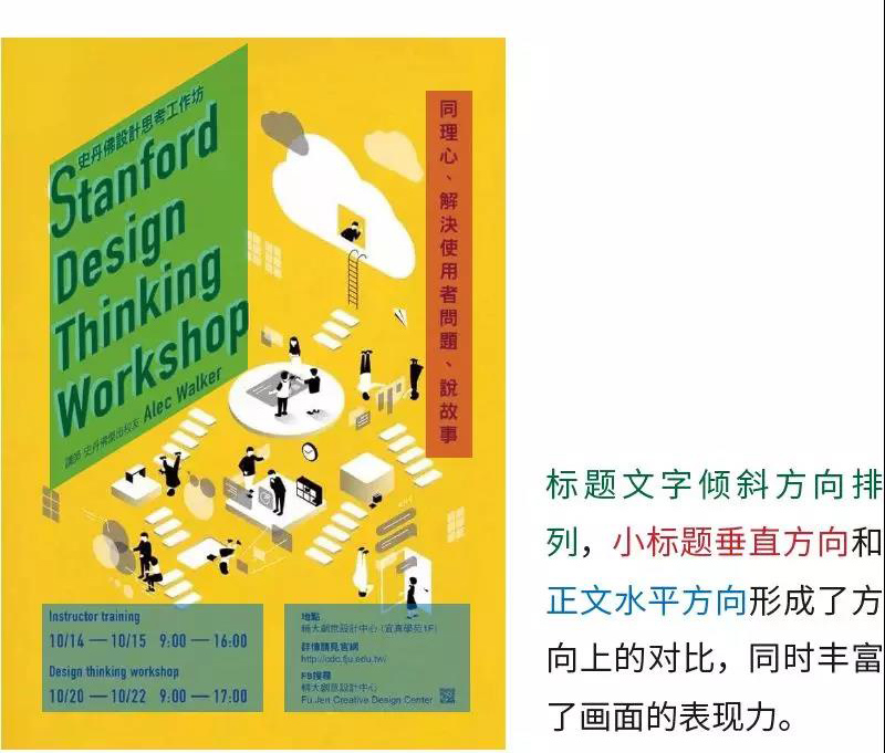 加入英文丰富画面,排版方向改为纵向排列,这样增加了方向对比;