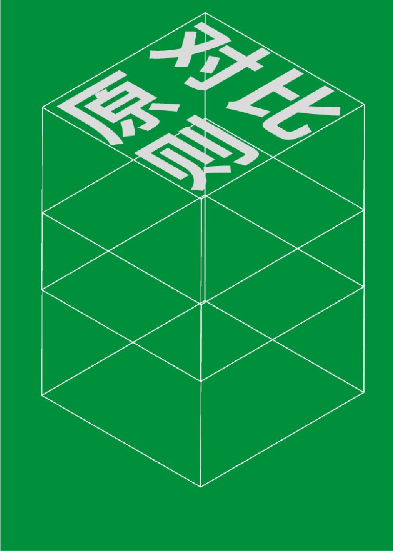 重新尝试使用其它对比手法设计新方案。把“对比原则”四字放大并错落的放置在版面中,形成位置上的对比。