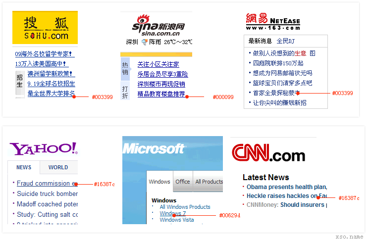 其实,大多数门户类的网站也是使用低饱和度的蓝色作为列表链接颜色的: