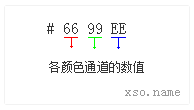 iv.下面提到的RGB数值,是指的各颜色通道十六进制数值: