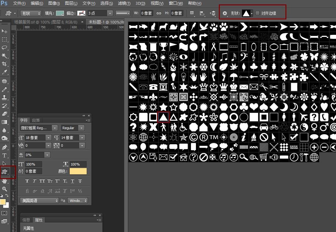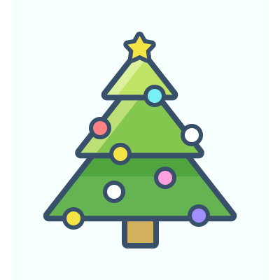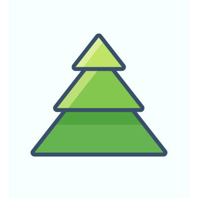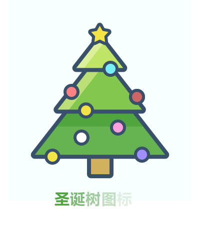 使用「自定形状工具」并在上方工具栏选择三角形的形状来绘制一个三角形。 填充为绿色,描边为蓝色,描边粗细不要按教程的数值,根据后面整体效果适当设置。 复制2个三角形,并绘制圣诞树的其余三角形,适当调整大小及图层关系(如下图),现在树形基本出来了。 绘制装饰品,同 STEP 1的方法,分别绘制星星、彩球和树木。 一个小圣诞树就做好了。顺便做个简单的 GIF 处理~