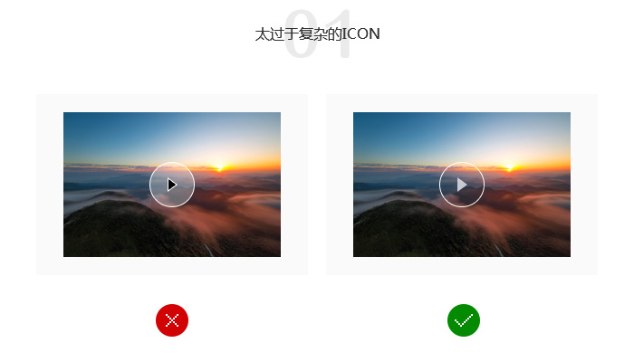 在设计ICON的时候喜欢设计很多细节部分,又是描边又是浅色透明等。整个给人特别繁琐。所以需要经过简化设计。