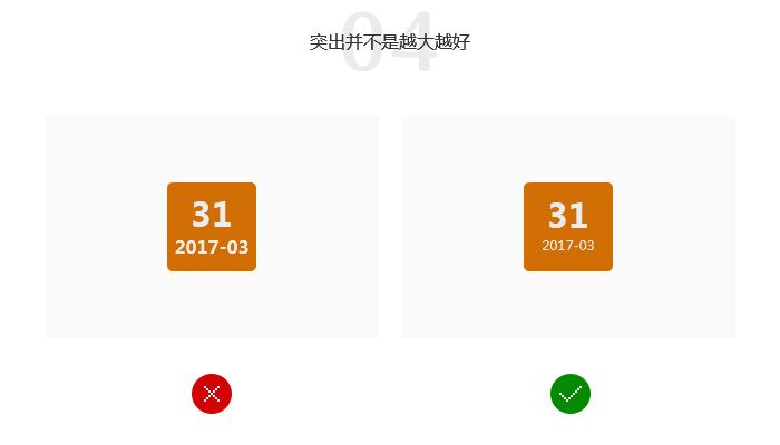 左边的图给用户在视觉上很饱满的感觉,会让人感到莫名的拥挤,所以有时候需要突出一处并不需要越大越好。而是需要保留一些空间感,让整个画面保持透气感,才能给用户带来愉悦的感受。