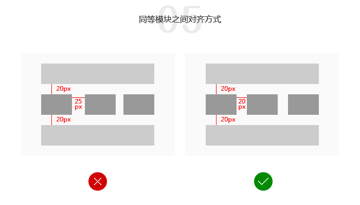 在同等级的模块之间的间距保持一致,会让设计更严谨就像右图这样的方式。