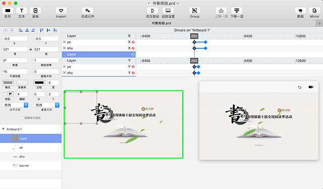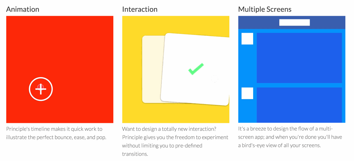 principle是一款在mac上的交互原型制作软件。界面类似 Sketch,动画的思路有点像 Keynote的神奇移,只要两个画板的元素之间发生了变化,那中间的动画过渡就会自动的补上,像flash的补间动画,制作非常的简单,效果出奇的好,同时还支持移动端镜像预览,可以在iphone和ipad上安装app,通过数据线连接,操作体验十分完美。
