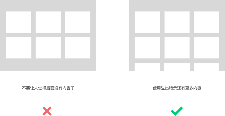 信息内容超出一屏是,要暗示还有更多的内容,不要出于强迫症处理成刚好展示完所有内容的感觉。