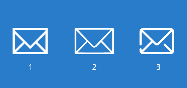首先比例上可以做点事情,比如圆角,之后在圆角上再做点文章,比如给直线稍微隔断,最后就得到了一个看起来没那么普通的信箱图标了。