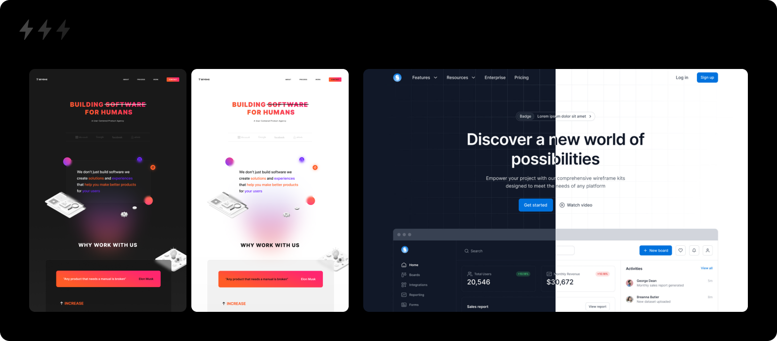 深浅主题:首先确定深色主题还是浅色主题。浅色主题的文字对比度较高,适合需要呈现大量内容的的网站。浅色的风格适配性也很强。深色主题则能更好地凸显色彩鲜艳的内容或图形,传递出时尚、现代、前沿的感觉。主题色调的选择并非二选一,有时深浅交错的呈现形式能够结合两者的优点,视觉体验更佳。