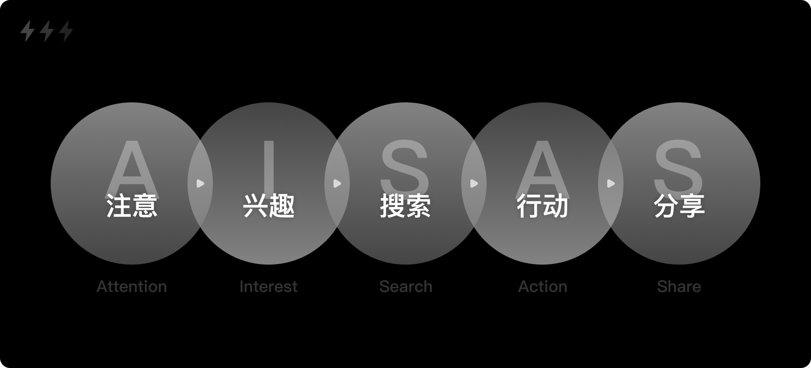 当互联网作为全新的媒介进入我们的生活,消费者行为模式开始重新解构。2005年,日本电通广告集团提出了全新模型:AISAS。模型中添加了两个来自互联网的行为,搜索和分享,这也正是互联网造成消费者行为改变的重要原因。